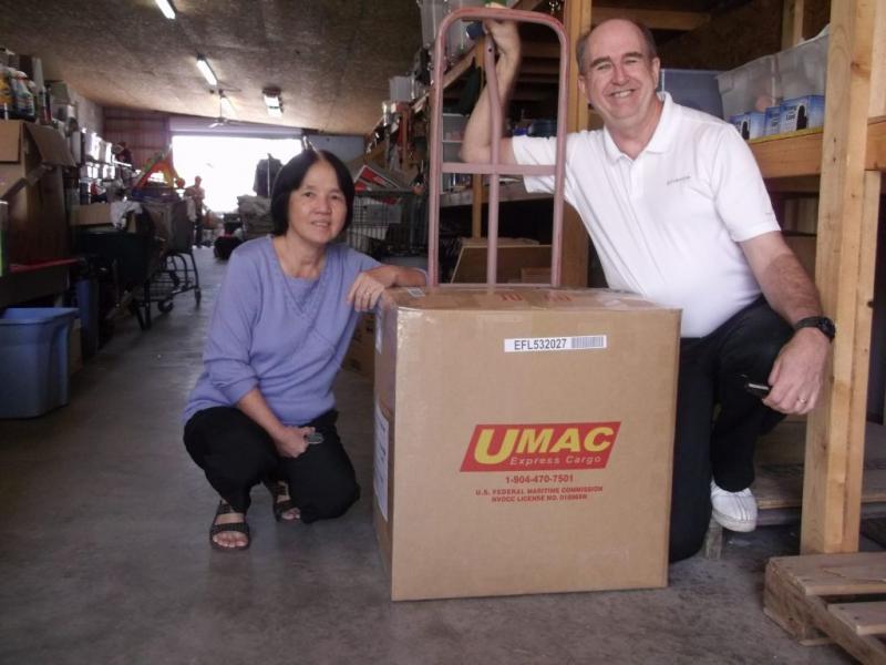 The picture above is one of the boxes of clothes that are shipped from the USA. In 2018, around 25 boxes of clothes were shipped. Once the clothes reach the Philppines, we then divide them up and begin distributing them to those in need. That is what you see in the second picture.